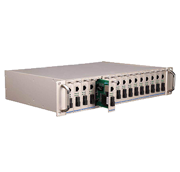 T500系列網(wǎng)管型機(jī)架式光纖收發(fā)器采用靈活的模塊化設(shè)計(jì),整機(jī)為16槽位2U機(jī)箱,由電源模塊和標(biāo)準(zhǔn)的熱插拔模塊構(gòu)成。 產(chǎn)品與多種光纖收發(fā)器子卡配套使用,可插入百兆電口、百兆光口、千兆電口、千兆光口等多種接口的子卡,適用于不同應(yīng)用現(xiàn)場的需求。
